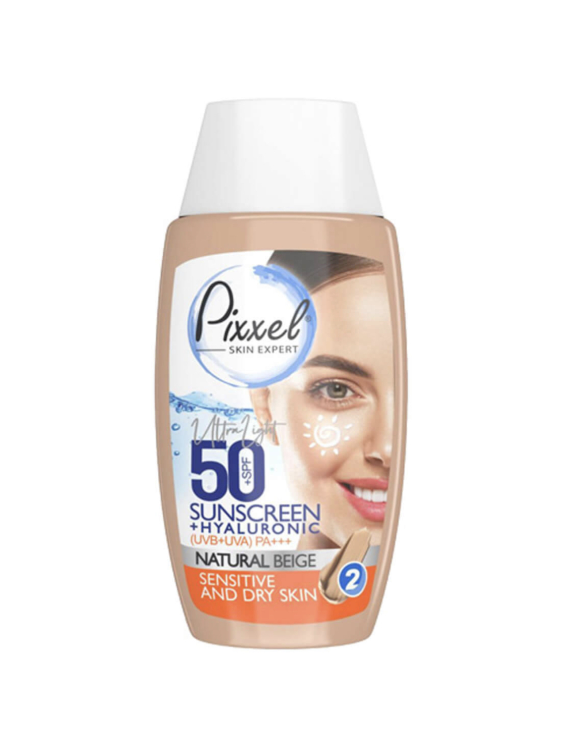 کرم ضد آفتاب رنگ بژ طبیعی مناسب پوست های خشک تا نرمال و حساس با SPF50 پیکسل