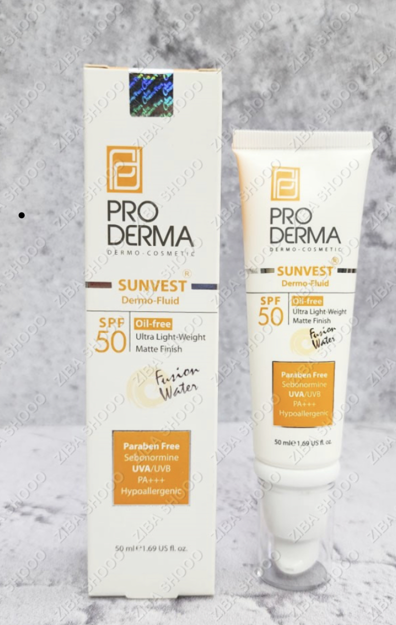 فلوئید ضد آفتاب فاقد چربی با SPF 50 مناسب برای پوست های معمولی تا چرب و جوشدار پرودرما